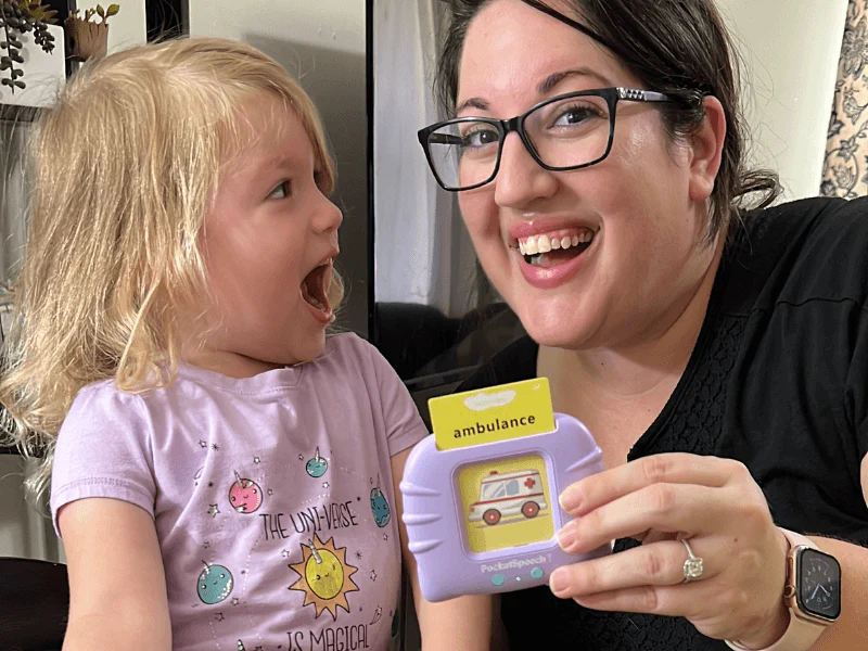 Boost your child's speech development with PocketSpeech™ - the toy that makes learning play-based and joyful for curious little minds.